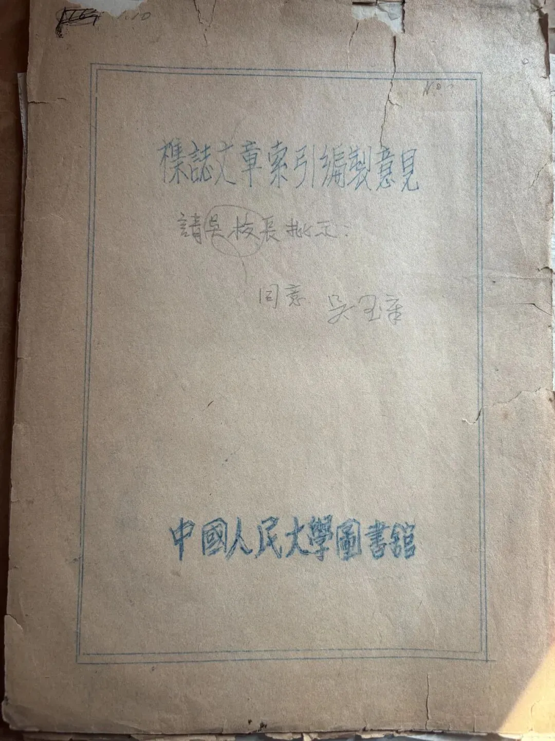 《杂志文章索引编制意见》吴玉章签批