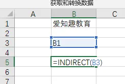 INDIRECT函数的引用的两种形式。一种加不引号,一种加引号。=INDIRECT(B3)——不加引号,地址引用:因为B3=B1,所以返回B1单元格中的内容“爱知趣教育”。