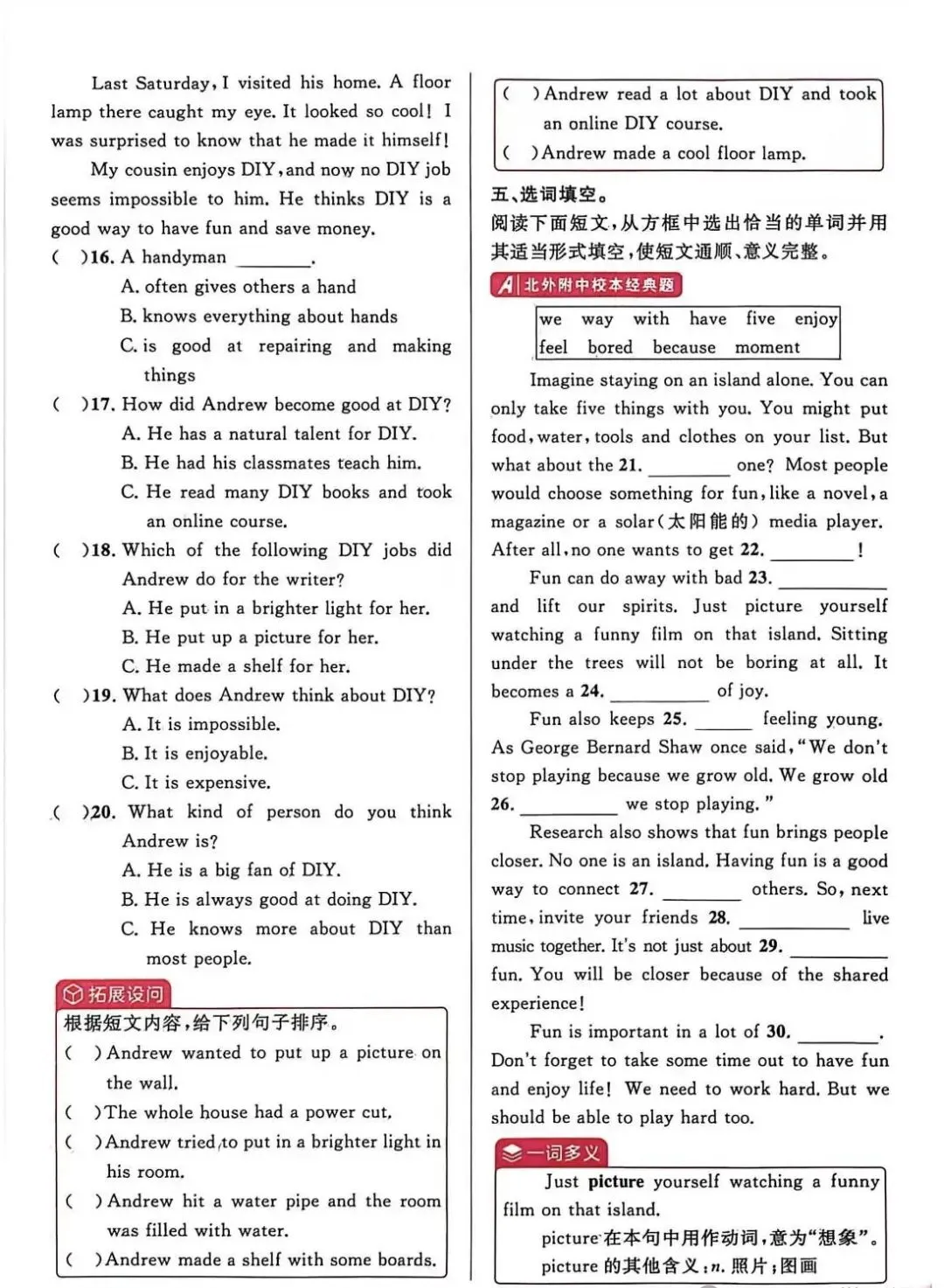 🗂️期末复习|人教版八年级上册英语补全对话&书面表达20天每日一练