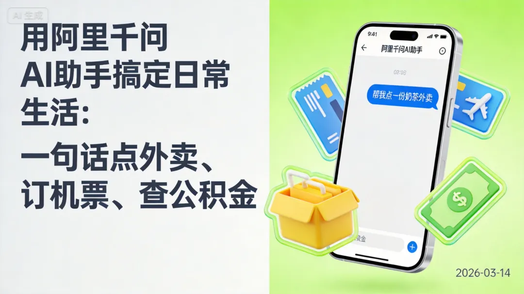 用阿里千问AI助手搞定日常生活:一句话点外卖、订机票、查公积金