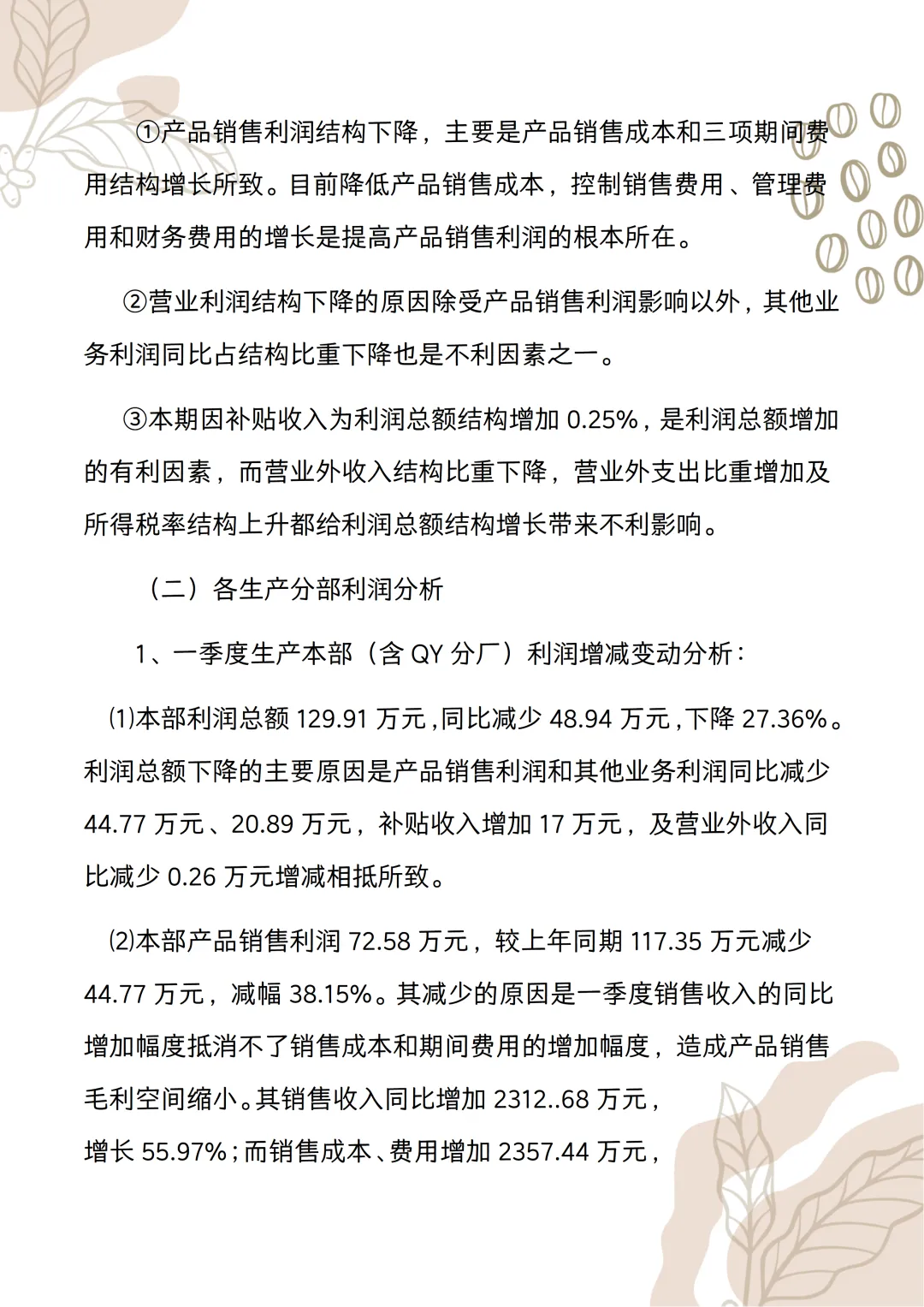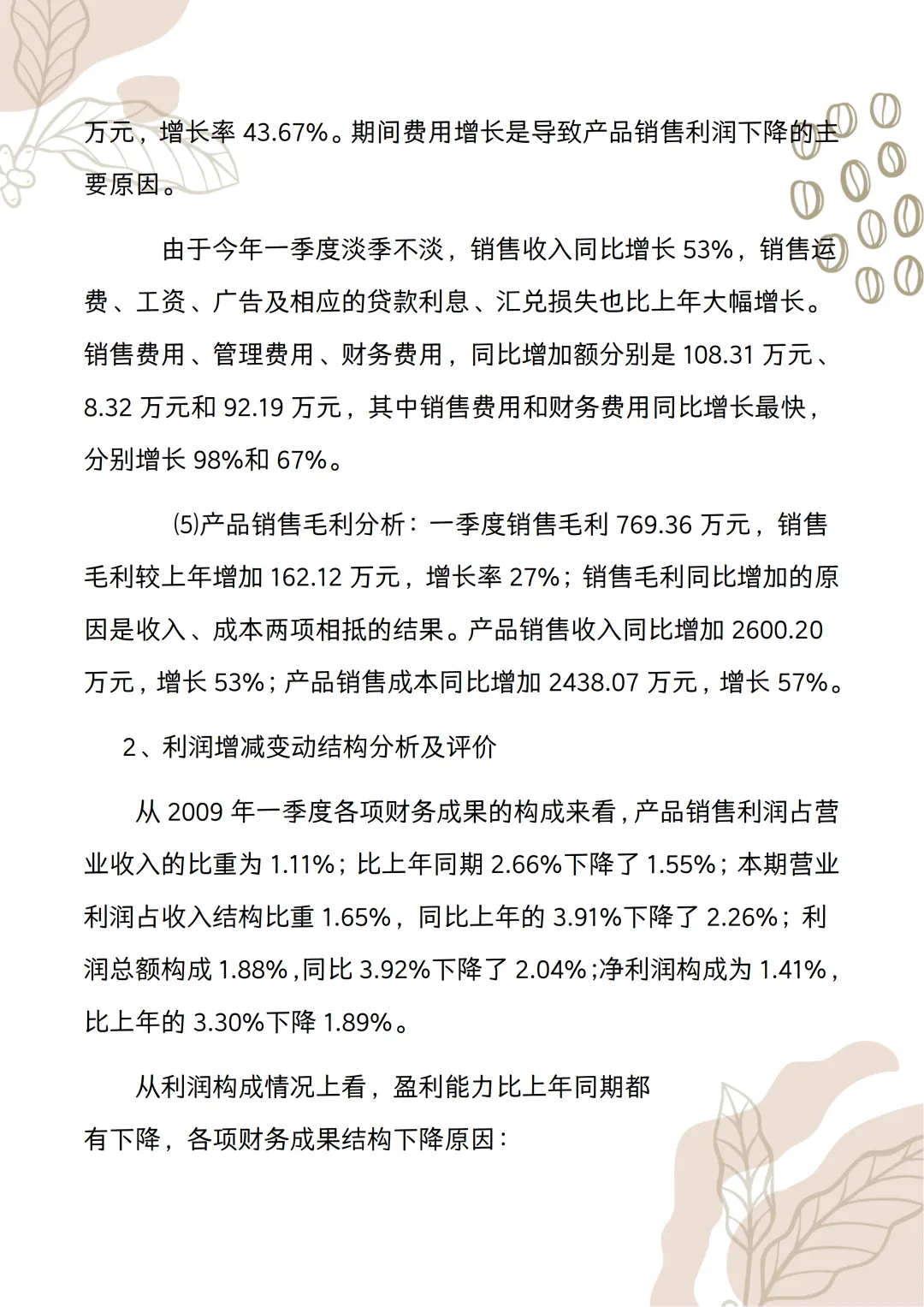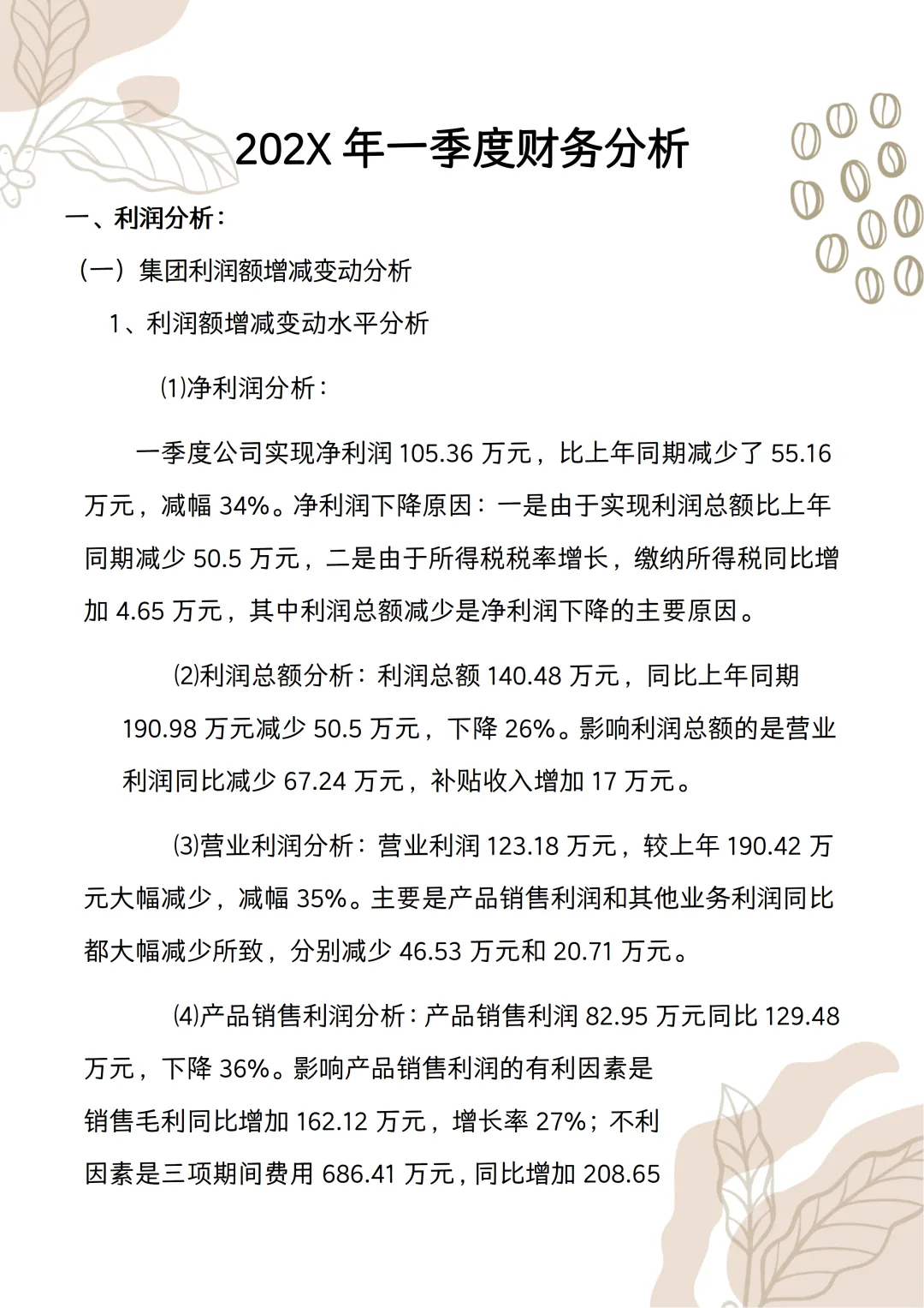 季度财务分析报告范文!word版本可以编辑,模板可以直接套用