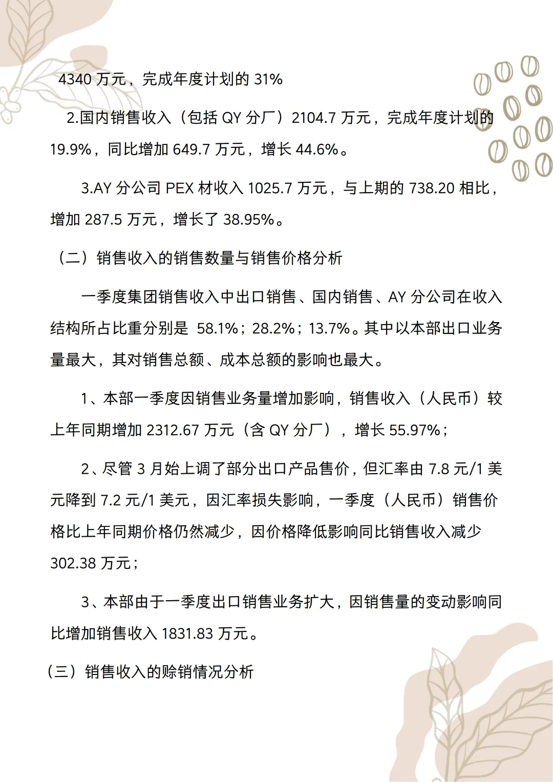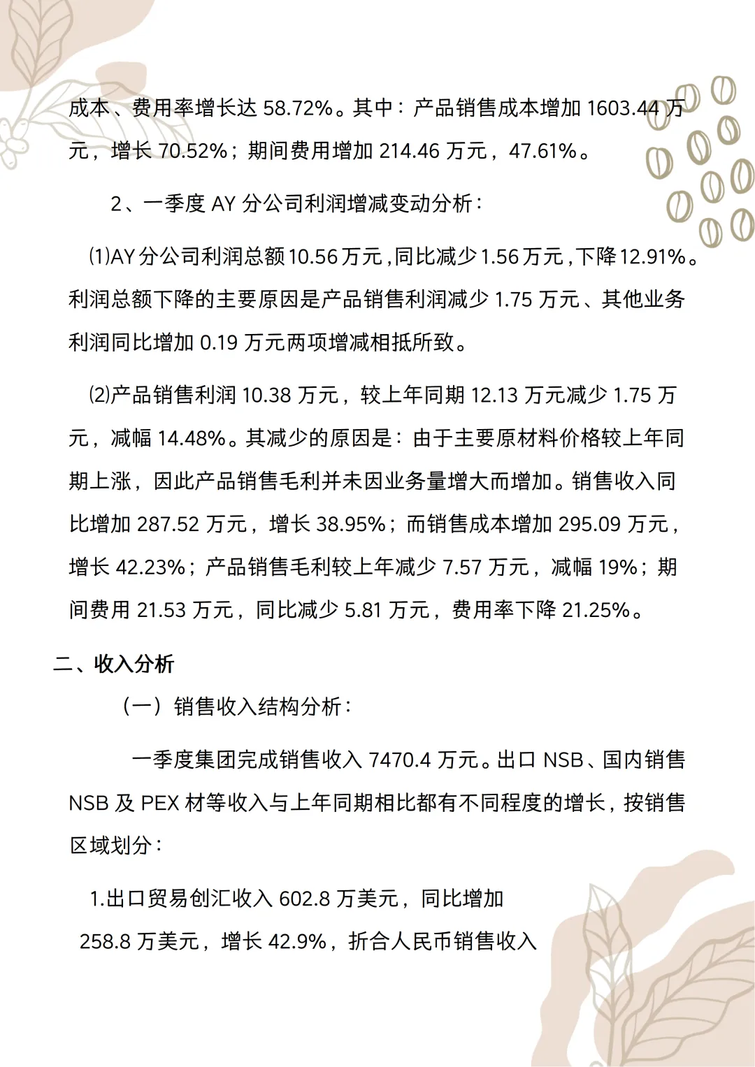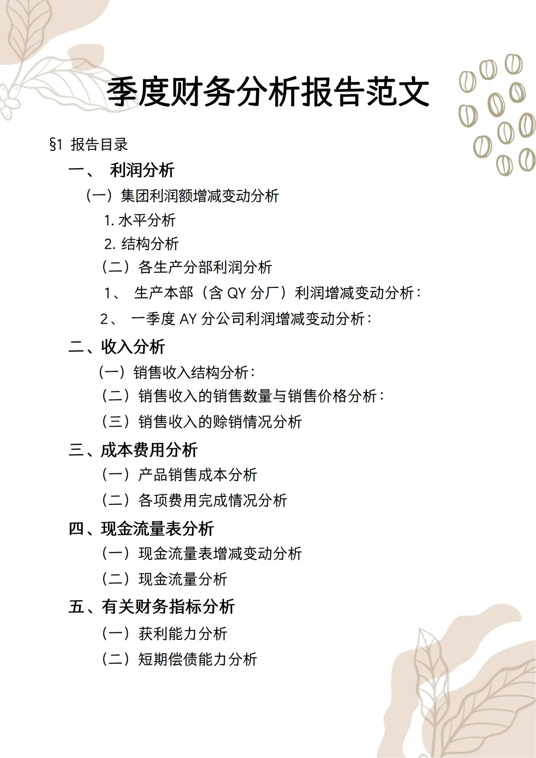 季度财务分析报告范文!word版本可以编辑,模板可以直接套用