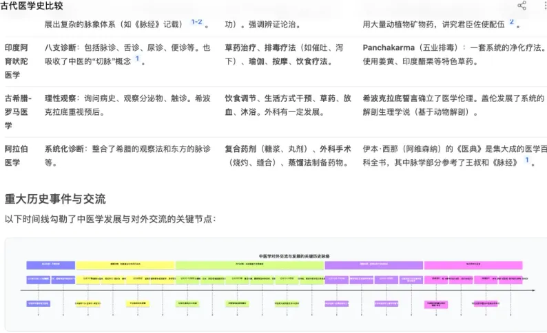 说实话,这种需要跨越时空、引经据典的问题,要是丢给我们人工来做,得去图书馆翻半天书,再整理个把小时才能理出头绪。但在 DeepEvidence 的回答里,时间轴清晰,核心人物和理论对比鲜明。