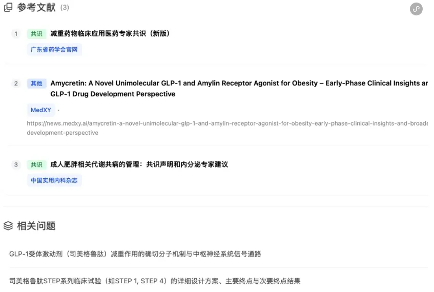 1.行话极度标准:它没有泛泛而谈,而是精准引用了 STEP、SELECT、SURMOUNT、SCALE等里程碑式研究代号。这都是内分泌领域写标书的“必引圣经”,说明它读过原文,且准确度不错。
