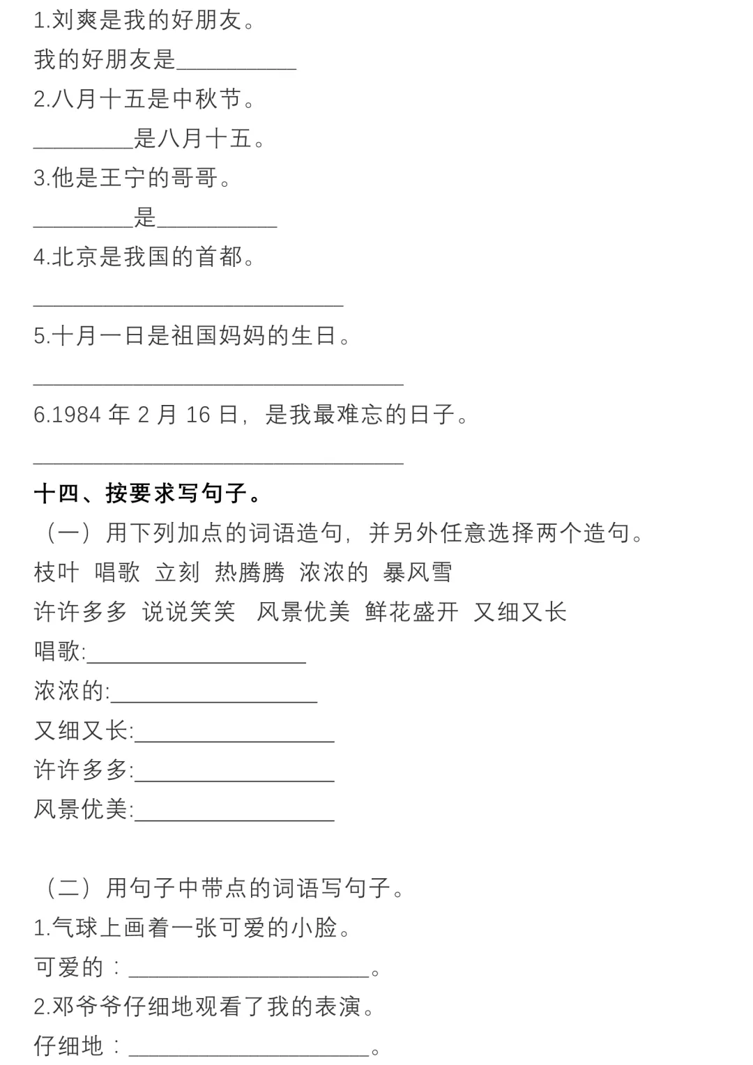 二年级语文(下册)句子专项练习含答案,电子版可保存打印~ 王老师整理了小学二年级语文(下册)句子专项练习含答案,电子版可保存打印~ 点击图片 保存打印 参考答案 小学语文知识点专项训练 如何领取这个电子版资料