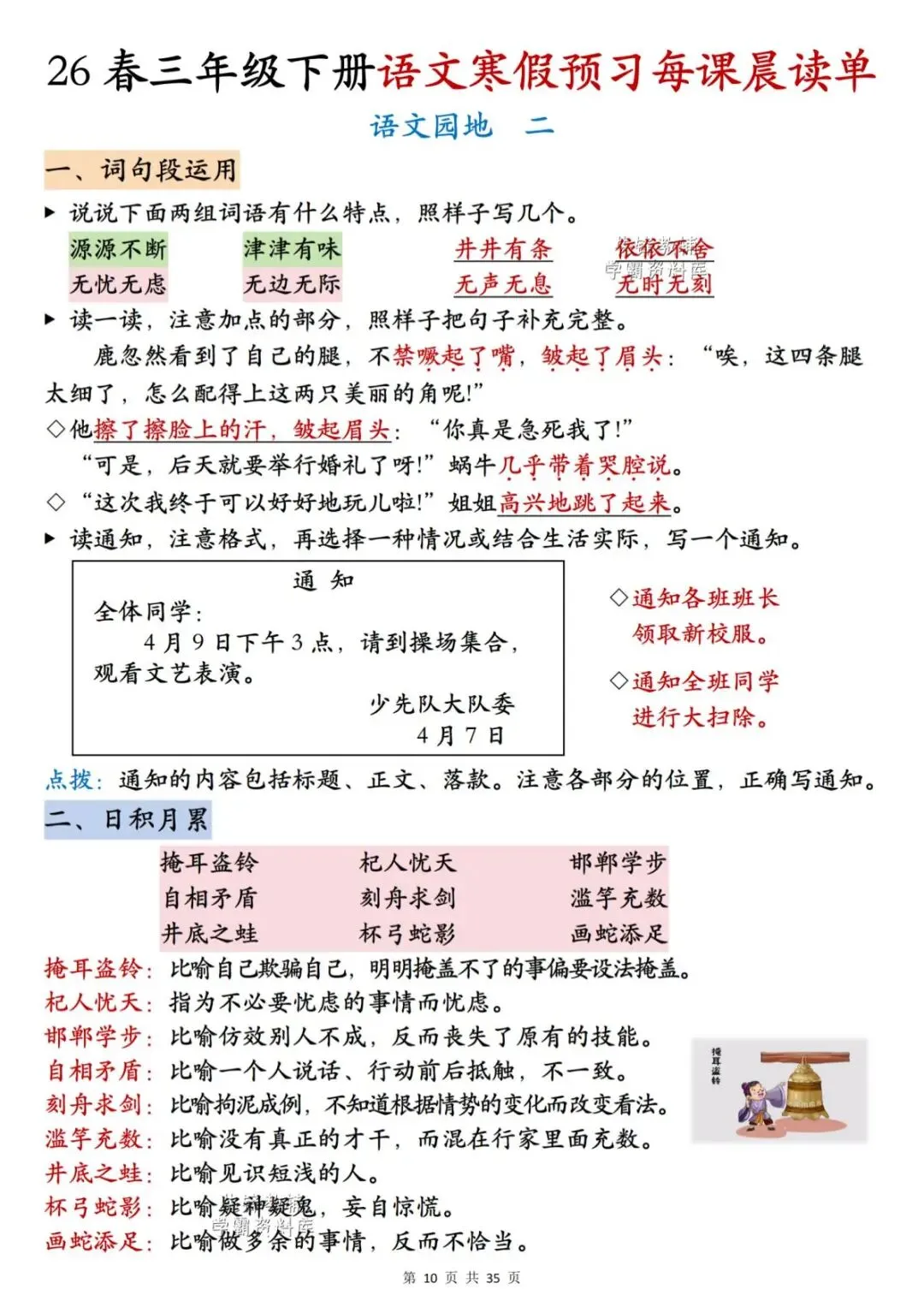 26春三年级下册语文《每课晨读单》,电子版可下载可打印