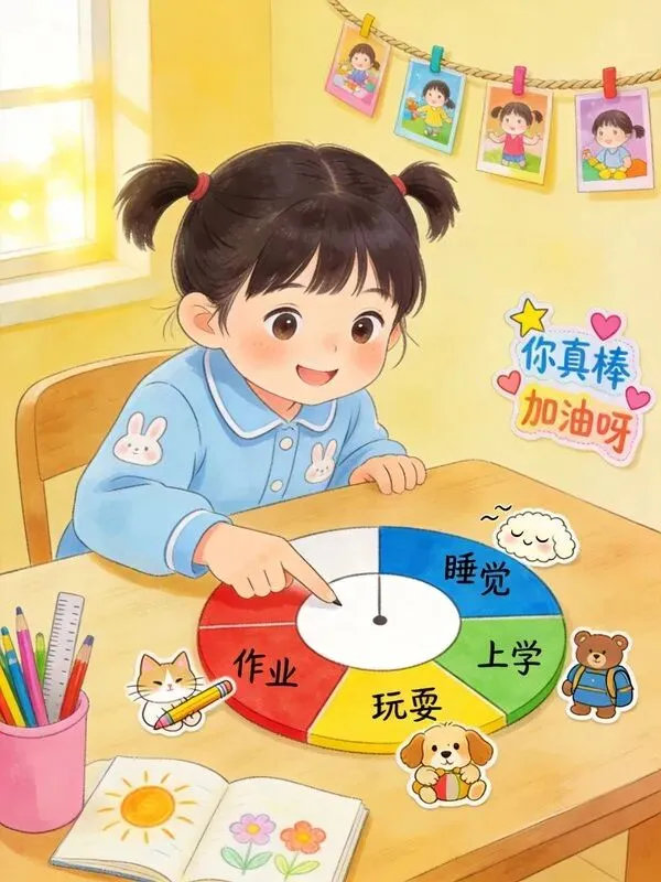 让孩子直观看到24小时分配:睡觉、学习、玩耍……抽象时间变彩色色块,一眼就懂。