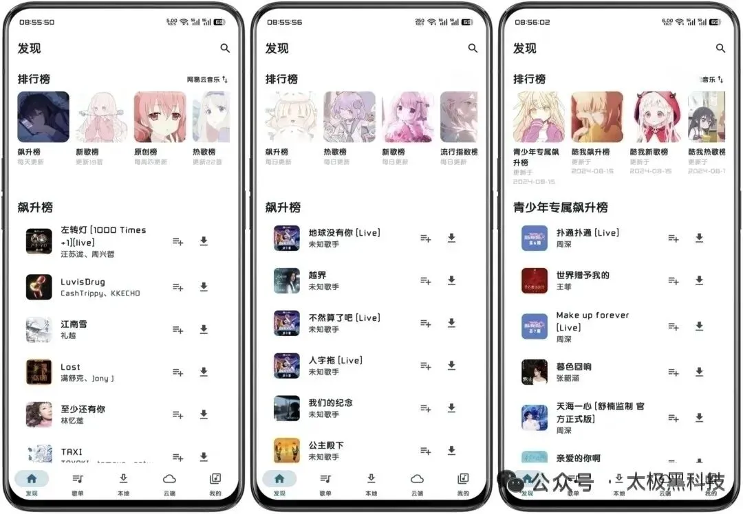 免费缓存下载:用户可以免费畅听全网高质量音乐,无需付费会员或下载付费歌曲。