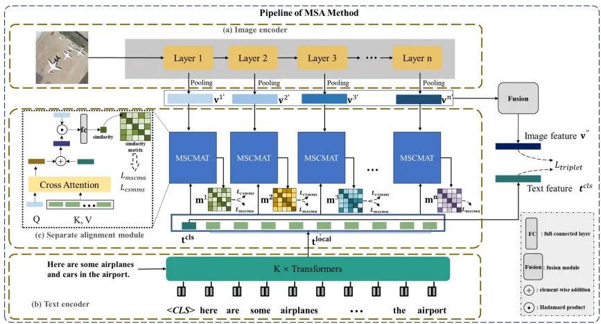 内容:本文针对遥感图像 – 文本检索任务中存在的关键问题,创新性地提出一种超越传统融合的多尺度对齐方法。在遥感领域,图像蕴含丰富的空间、光谱等信息,文本则以自然语言描述目标特征,二者特征差异大且关系复杂,传统融合方法难以充分挖掘其深层次关联,导致检索精度受限。该方法首先对图像和文本进行多层次特征提取。对于图像,从不同分辨率、不同语义层次获取多尺度特征;对文本,从词汇、短语到句子层面提取特征。随后,采用精细的对齐策略,在多个尺度上将图像和文本特征精准匹配与关联,让图像的视觉信息与文本的语义信息在语义层面高度一致。实验表明,该方法有效解决了因特征差异导致的检索不准确问题,显著提升了遥感图像与文本之间的匹配精度,为遥感图像 – 文本检索领域提供了更高效、精准的解决方案,推动了该领域的发展。
