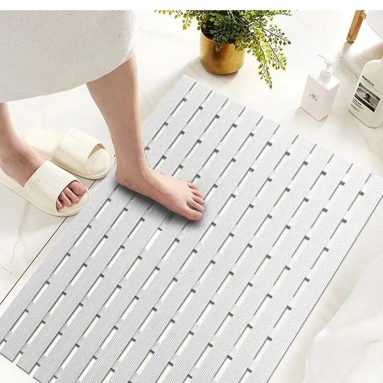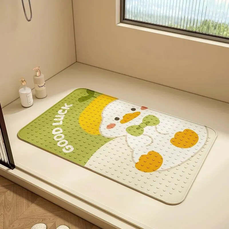 :硅藻泥材质无毒无害,环保耐用,使用起来特别放心。其柔韧性佳,且具有良好的吸水性能,能迅速吸走脚底水分,保持浴室地面干爽。 - 防滑性能