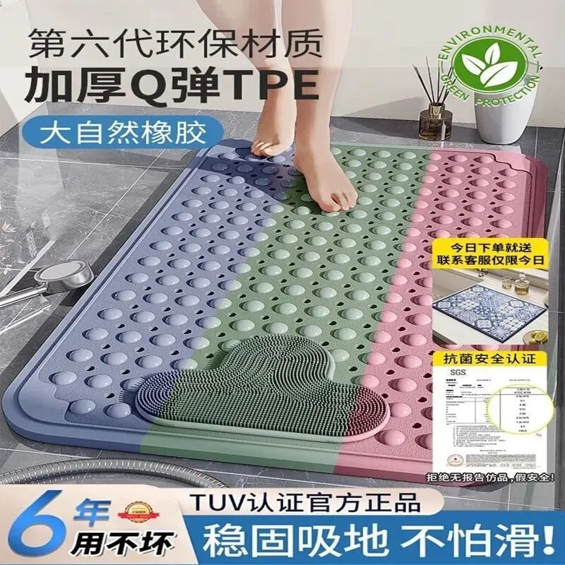 :TPE(热塑性弹性体)材质同样环保无毒,安全无异味,适合孕妇和儿童使用。其柔软性和弹性极佳,脚感舒适。 - 防滑性能