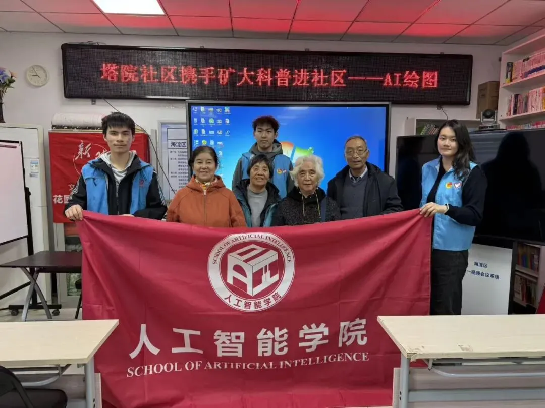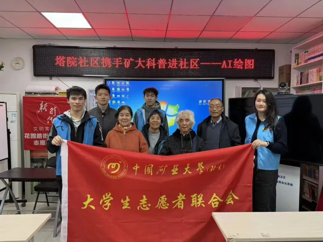 本次“AI工具绘图技巧”社区科普活动,于3月10日在塔院社区居委会顺利开展。活动由人工智能学院25级本科生3名与中国矿业大学(北京)大学生志愿者联合会志愿者1名共同参与,本次活动旨在向社区居民普及AI绘图工具的实用知识与操作技巧,帮助大家解锁数字创作新技能,感受人工智能带来的创意乐趣。