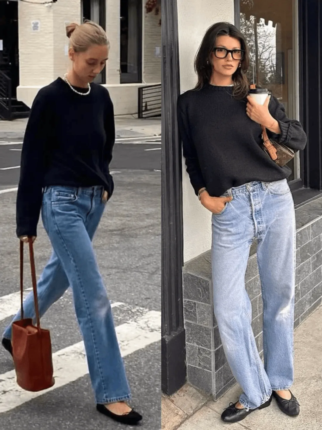仔细看,她们腿上不约而同穿的都是【直筒裤】。