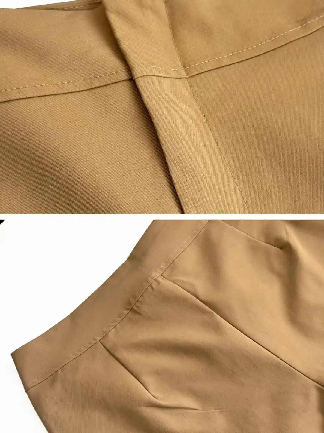 面料手感柔软,同时又具有一定的筋骨,不会软塌塌地贴在腿上,能始终保持良好的版型。