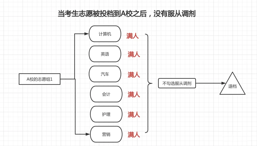 ②不服从专业调剂:当所填报的专业志愿全部无法录取时,直接做退档处理。由此可见服从专业调剂的重要性。