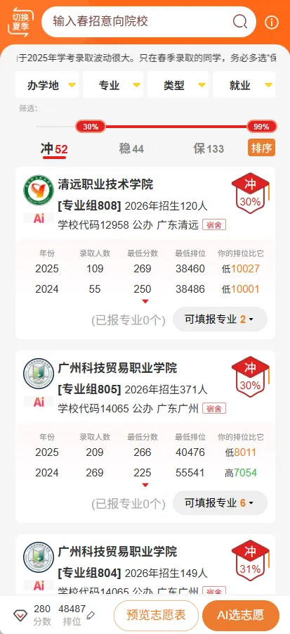 实在不想动手及报考迷茫的同学们也可以结合一些志愿填报智能推荐系统工具,输入分数和排位就可以轻松生成冲、稳、保志愿填报方案!可登录志愿填报智能辅助系统使用推荐功能!