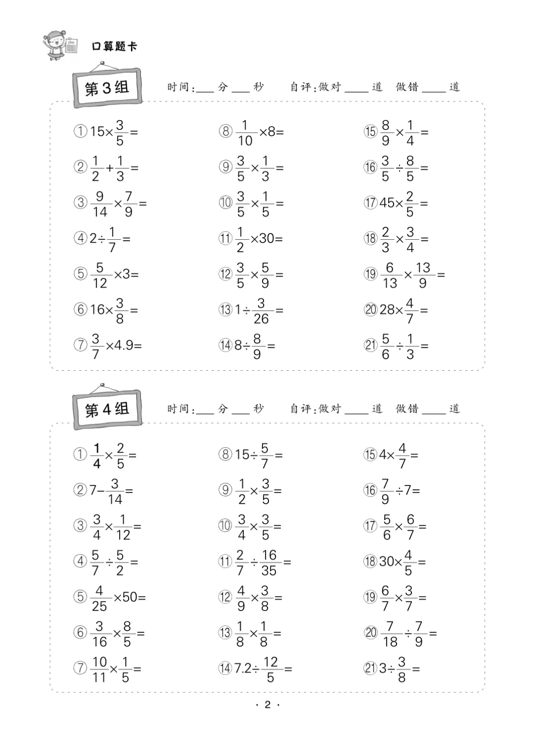 【资源免费下载】六年级(下)数学 口算题卡天天练《北师版》,PDF电子版,可打印