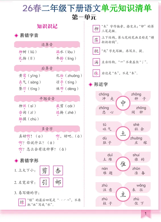 本期分享:2026春二年级下册语文单元知识清单,如果觉得不错的话,可以转发分享到班级群/年级群,让家长打印出来,帮助孩子学习哦!
