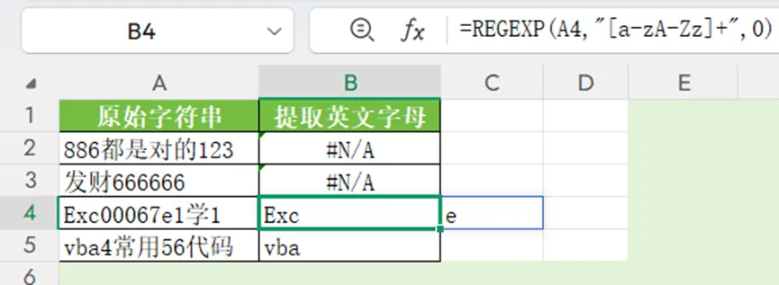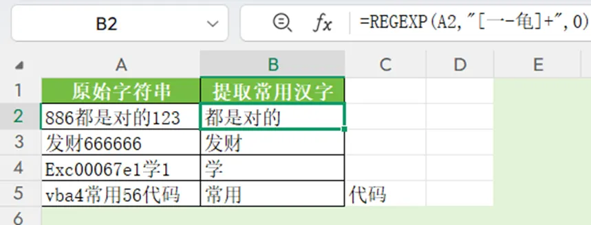 122、WPS表格的正则表达式函数REGEXP:从原始字符串中提取出数字、英文字母、常用汉字
