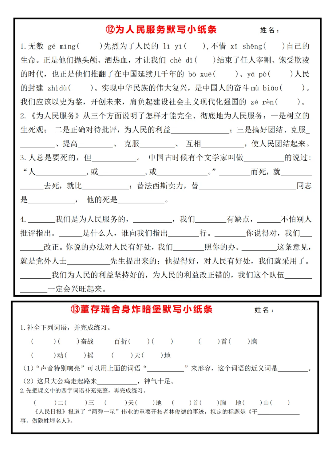 六年级下册语文课内重点默写小纸条,电子版可打印 ↓↓↓更多学习资料点击下方小程序 ↓↓↓ 版面有限,不过多展示 需要直接点下方领取 完整电子打印版领取方式 ▲点击上方 儿童英语口语 在公众号消息框发送: 7387,即可领取