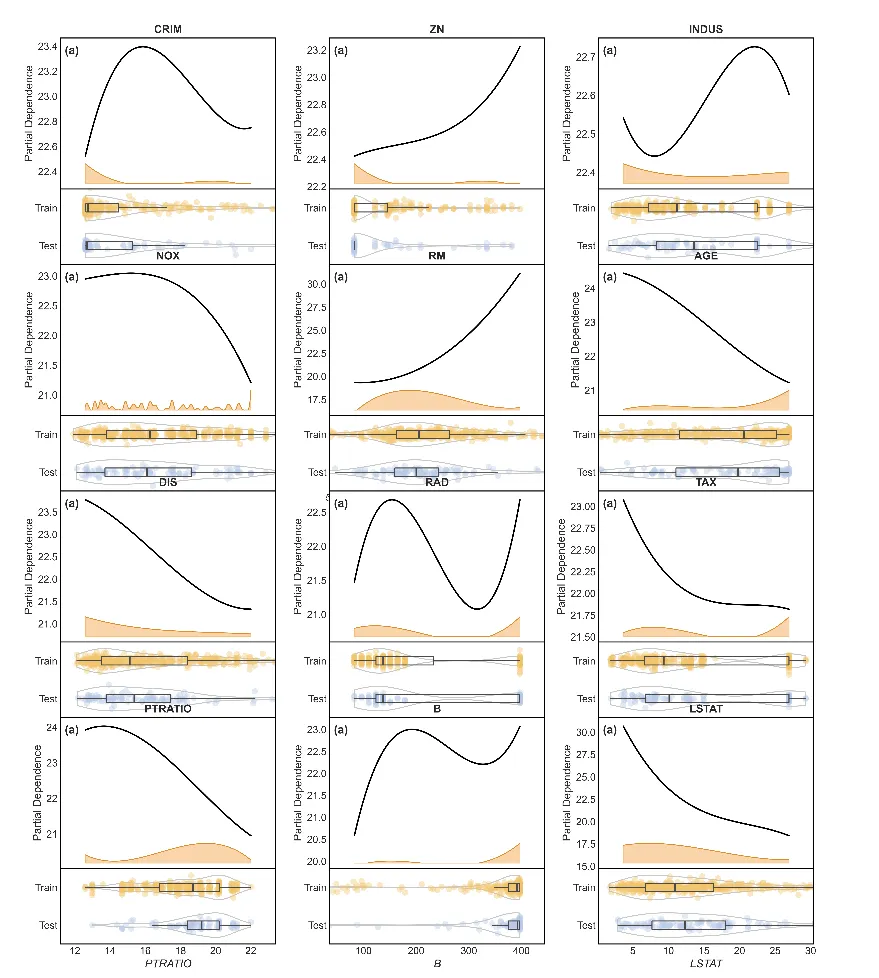 论文绘图神器:集成训练/测试集分布的高级部分依赖图(PDP)绘制指南