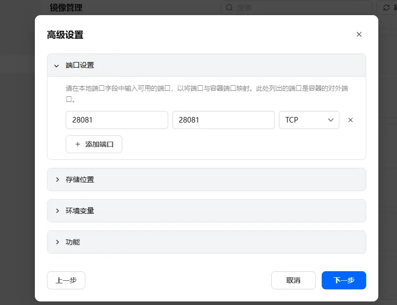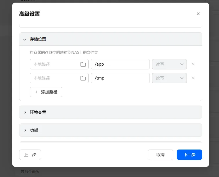 存储位置配置,飞牛NAS会自动识别并显示需要挂载的两个目录: