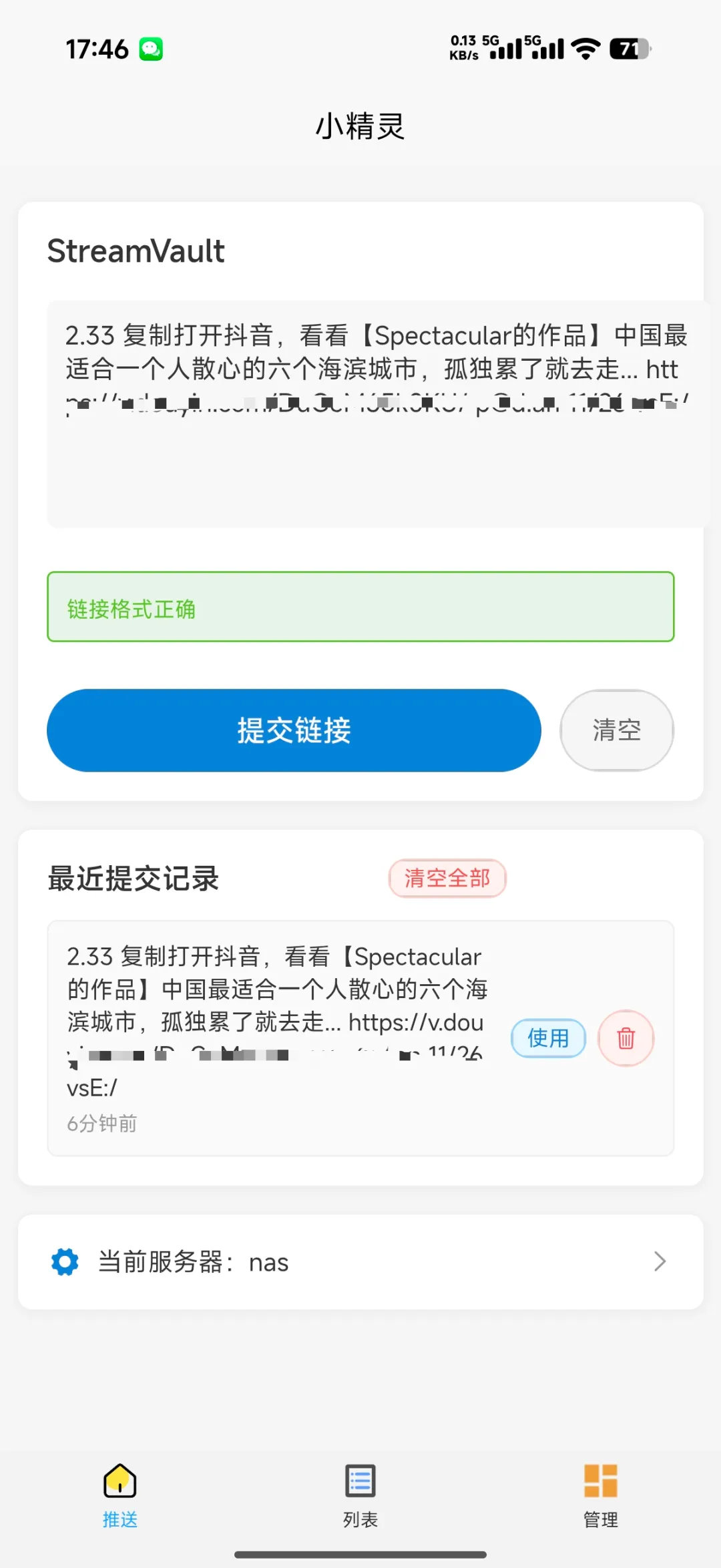 添加完服务器后,返回,粘贴上我们想要下载视频的链接
