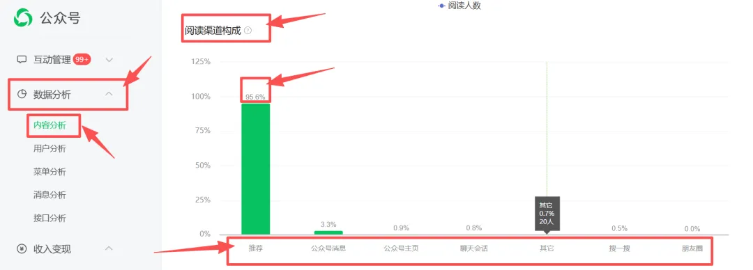 前段时间,我这个账号的阅读量一直在两位数,看了后台数据,推荐占比居然只有1.12%,还好现在又慢慢涨到了84.16%。
