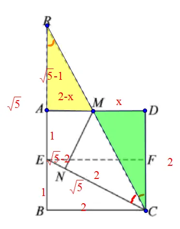 设出x,利用相似得(2-x):x=(√5-1):2得x=√5-1,所以MD,MN都满足,选项C正确.