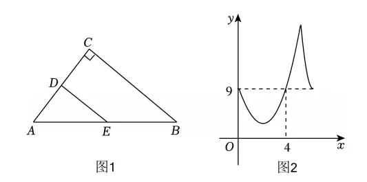 从函数图像过(4,9),和(0,9)关于对称轴对称,所以函数图像的对称轴是直线X=2。t=2时,DE²是最小,即AE=2时DE⊥AB。