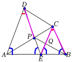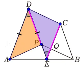 根据条件紫色线段相等,得出PD平行等于BC得出平行四边形BCDP得CD=BD