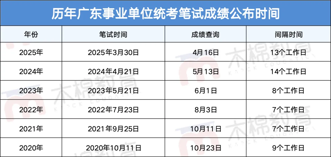 官方招考公告:明确了笔试结束后20个工作日内发布成绩。根据近2年时间来看,成绩都在笔试结束后的13-14个工作日公布,预计今年成绩公布时间为3月底或者4月初。