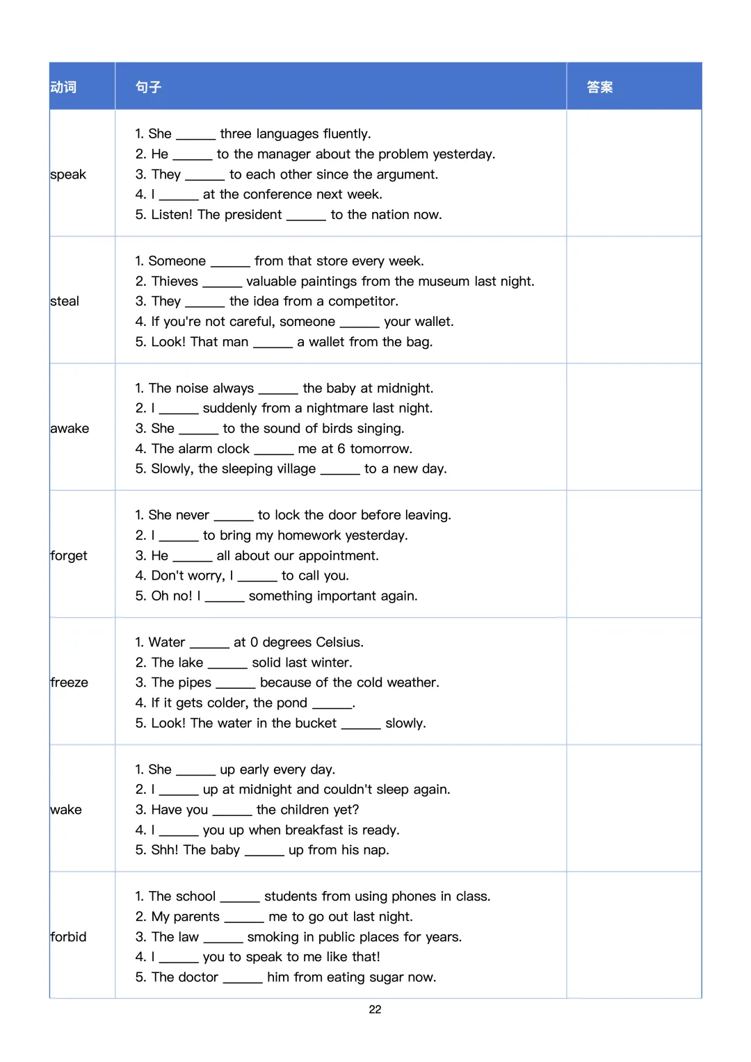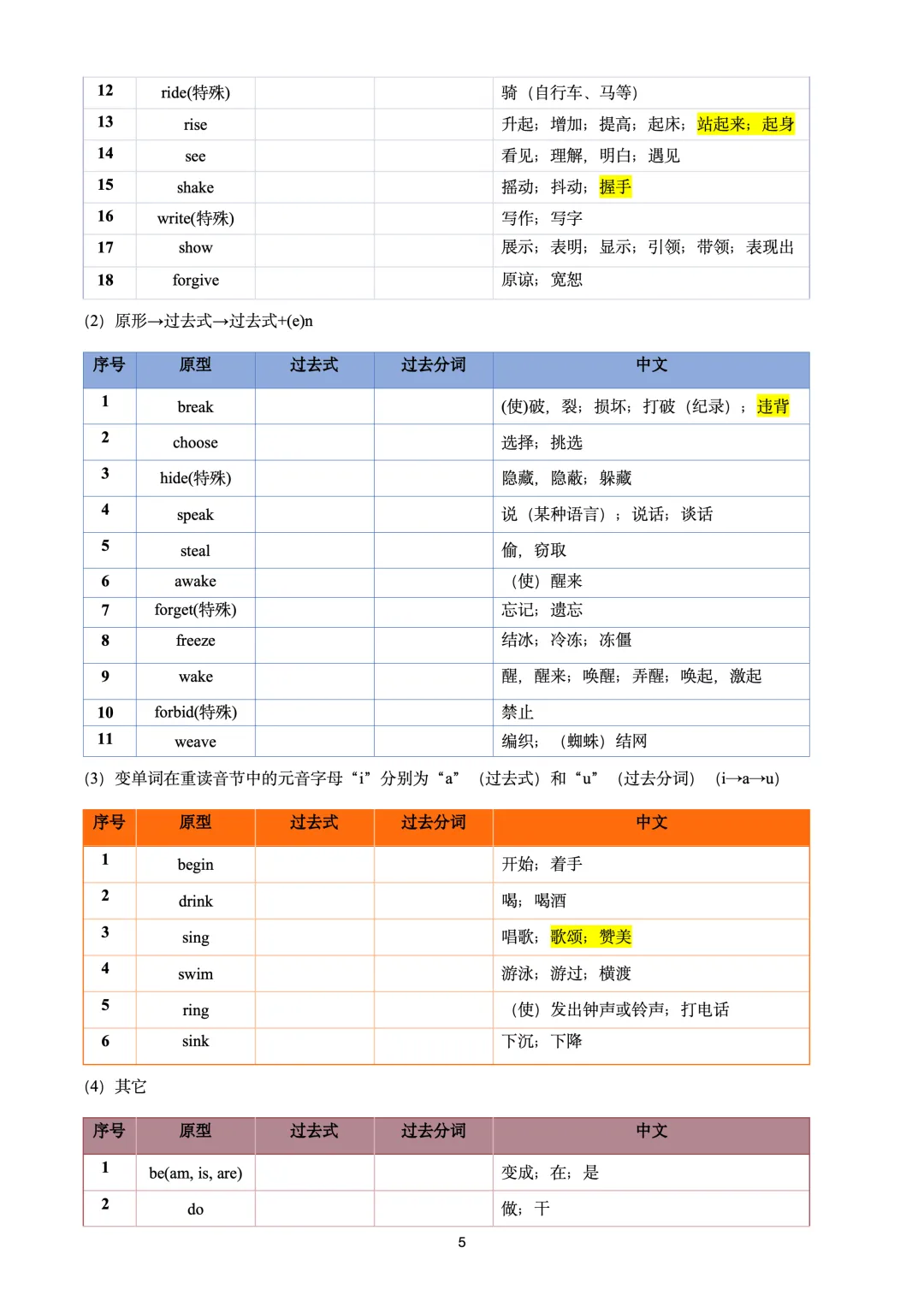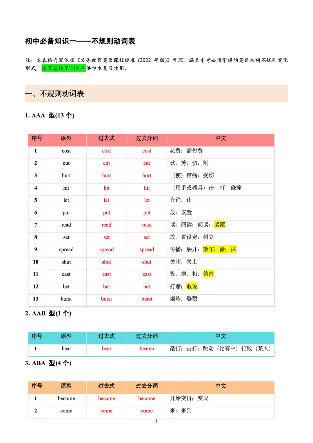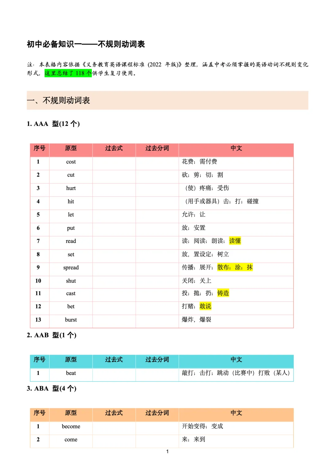 本文最后更新于2026-03-14,某些文章具有时效性,若有错误或已失效,请在下方留言或联系老夜。 初中必备基础知识一——不规则动词表(背诵+测试+习题) 不规则动词表——背诵版 不规则动词表——测试版 不规则动词表——习题版 不规则动词表——答案版 完整pdf版,后台留言哦!