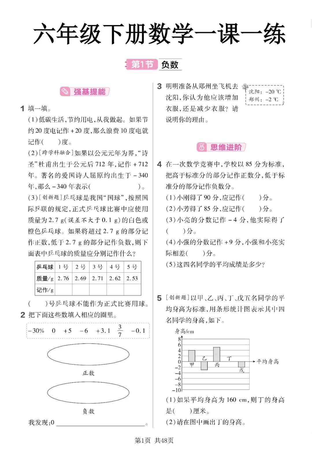 【可打印】人教版六年级(下)数学一课一练