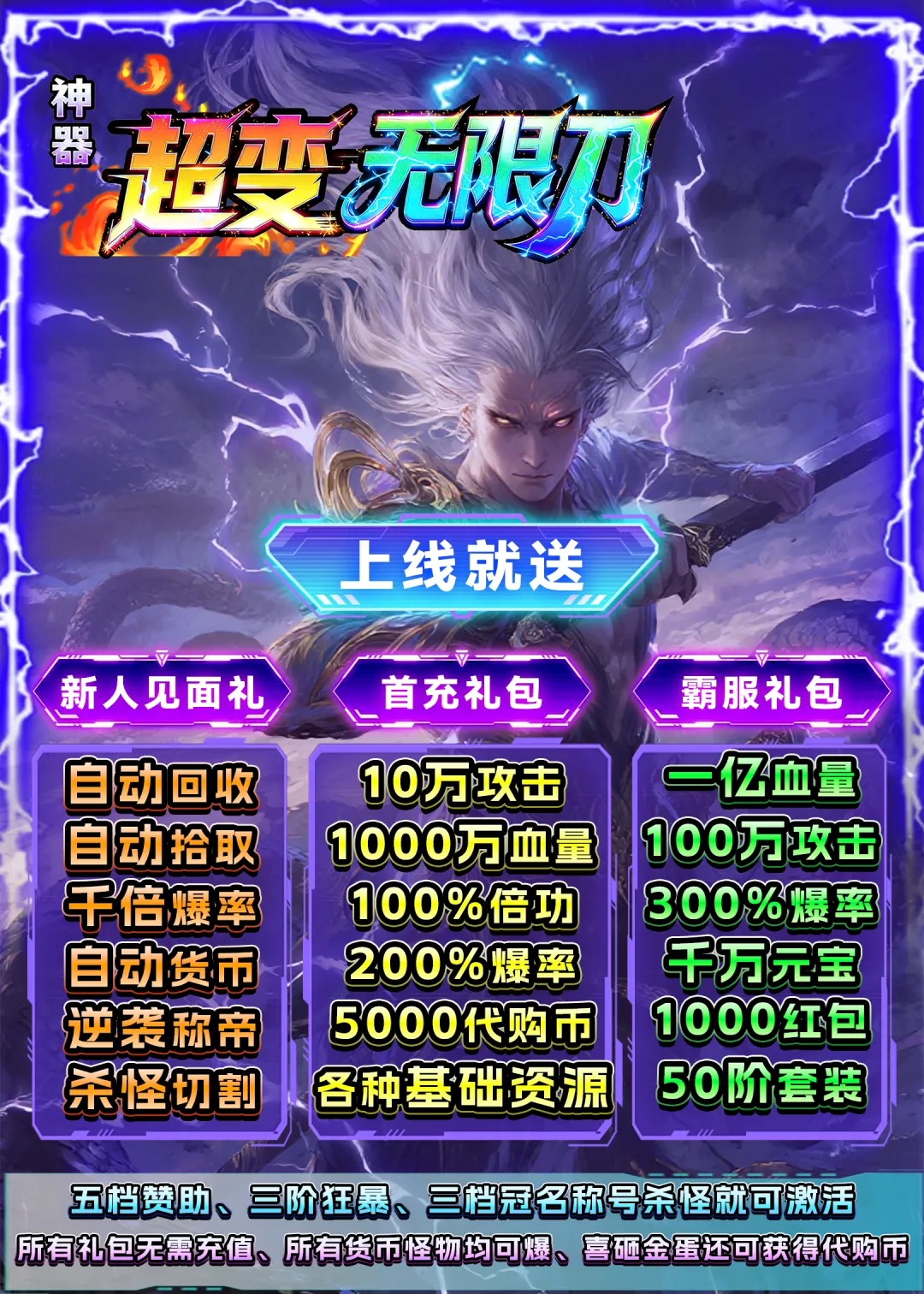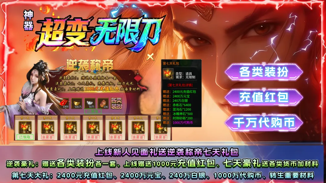 《神器超变无限刀》上线送一切!送送送,一刀999,要爽你就来.