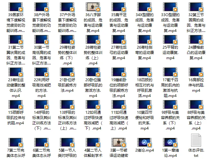 今日分享体态康复视频合集,可点击下图看目录,有需要的下拉扫码领取
