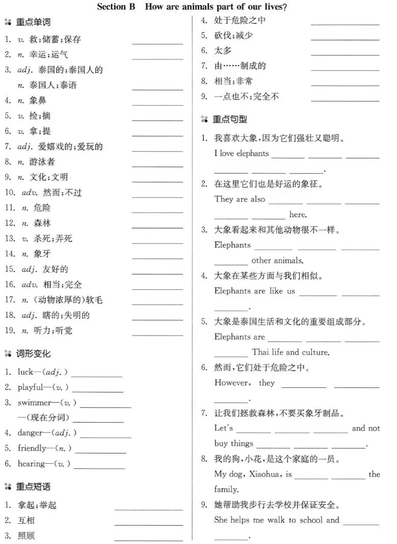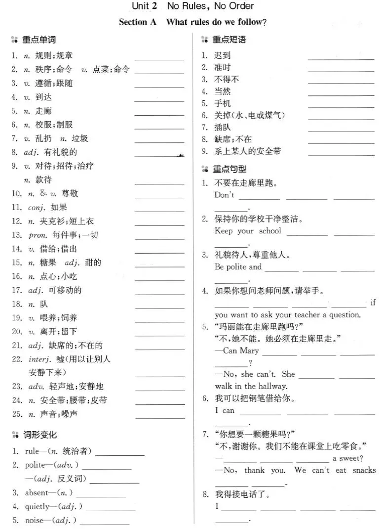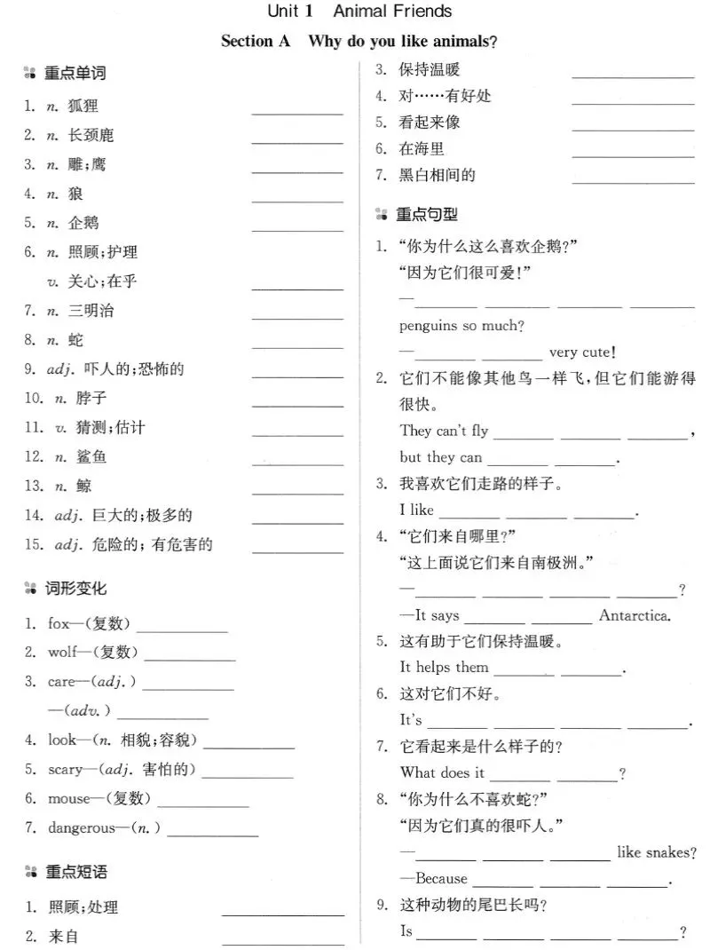 小鹿老师今日分享:七年级下册英语月考必备基础知识点默写训练