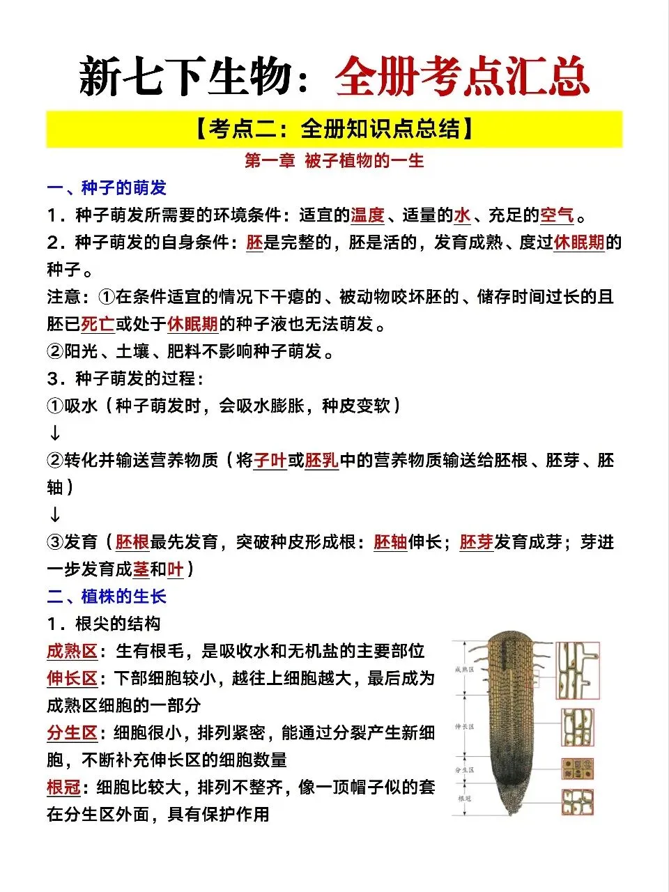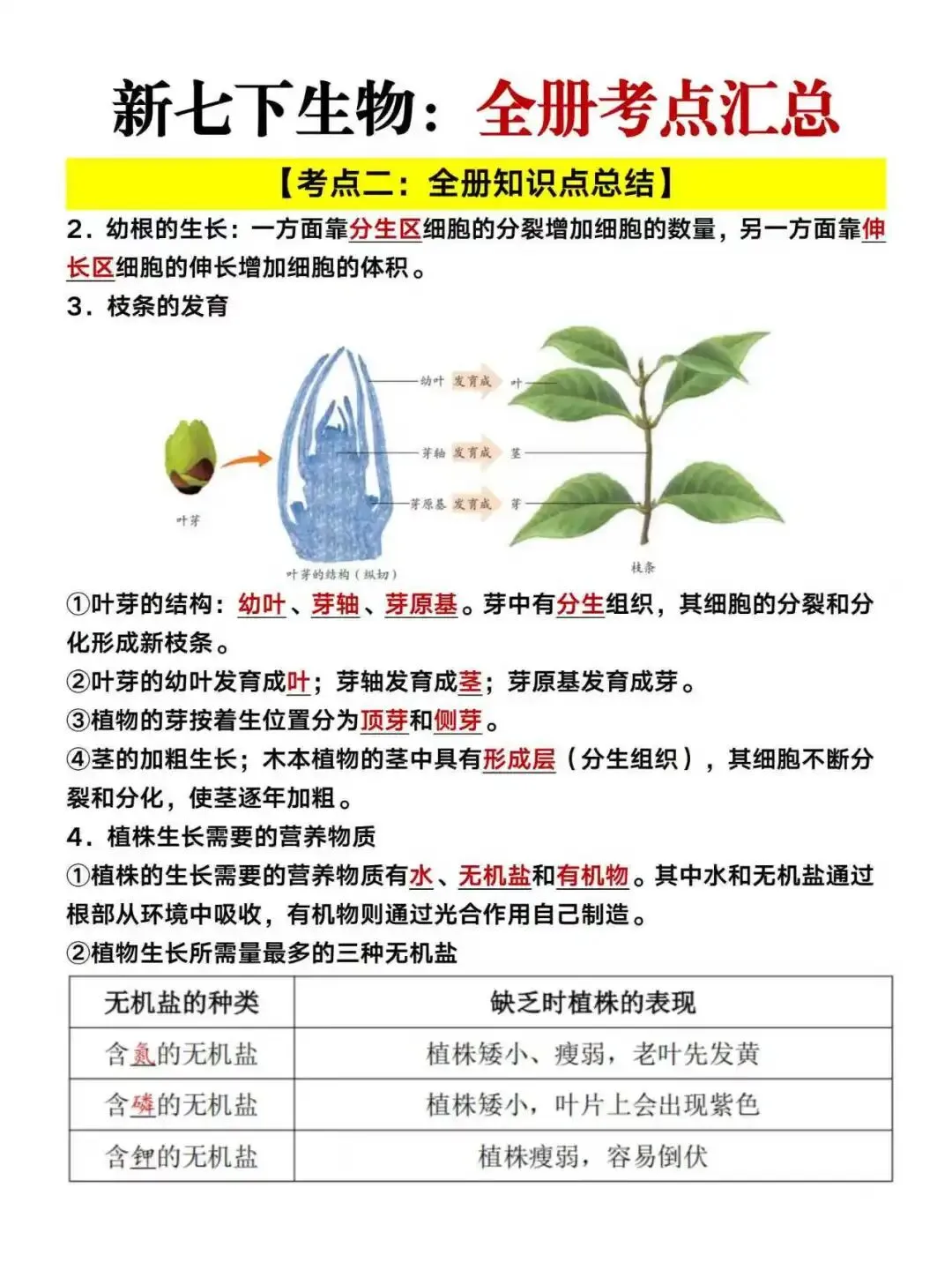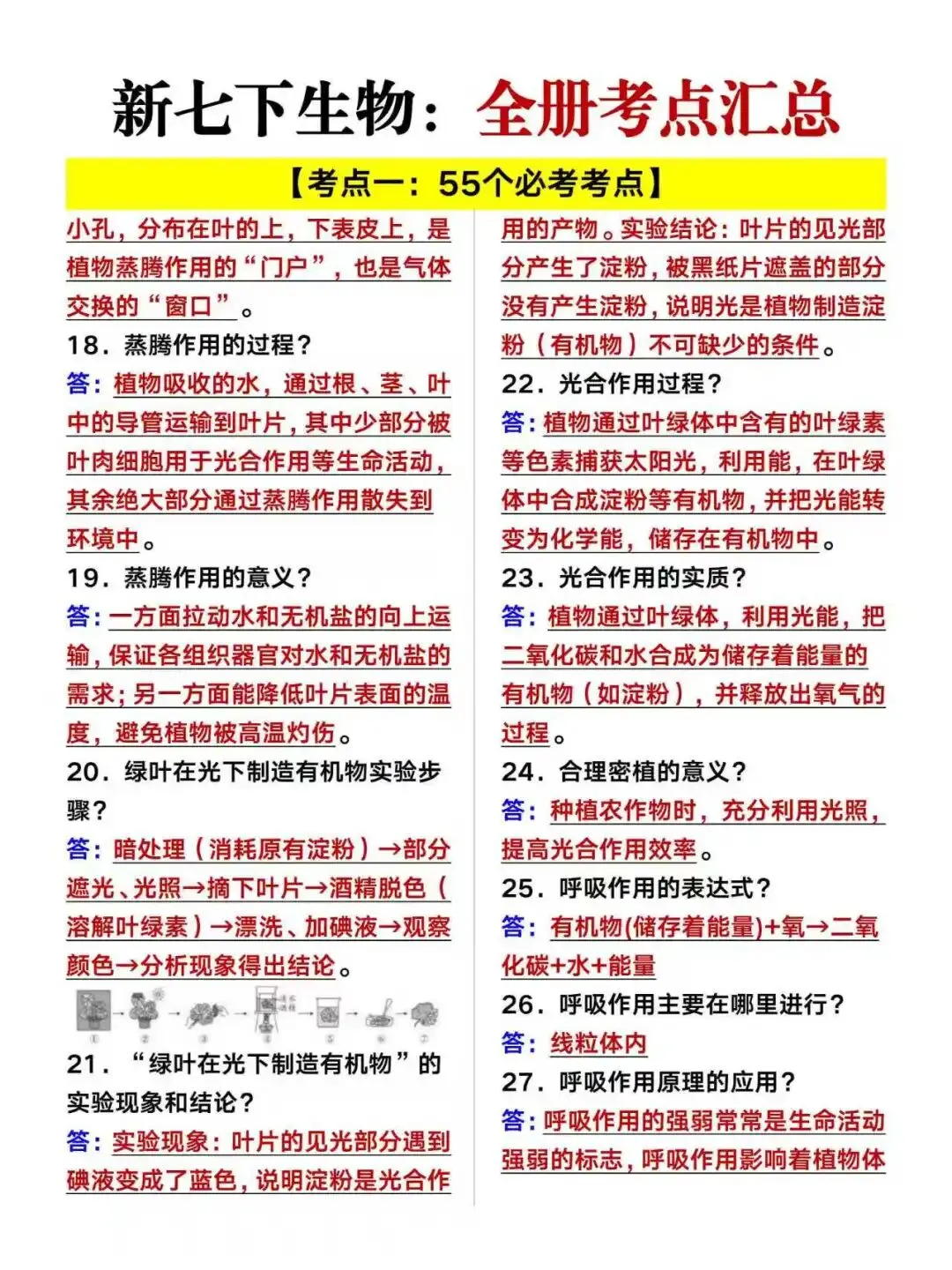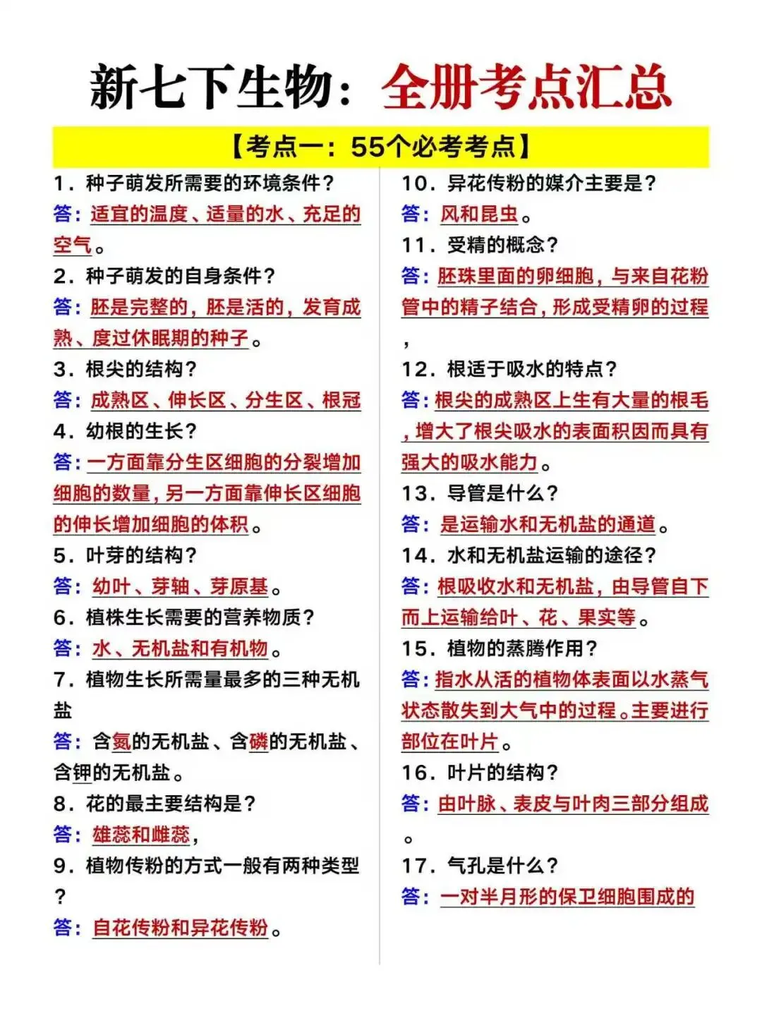 小鹿老师今日分享:七年级下册生物月考必备知识点总结及55个常考题