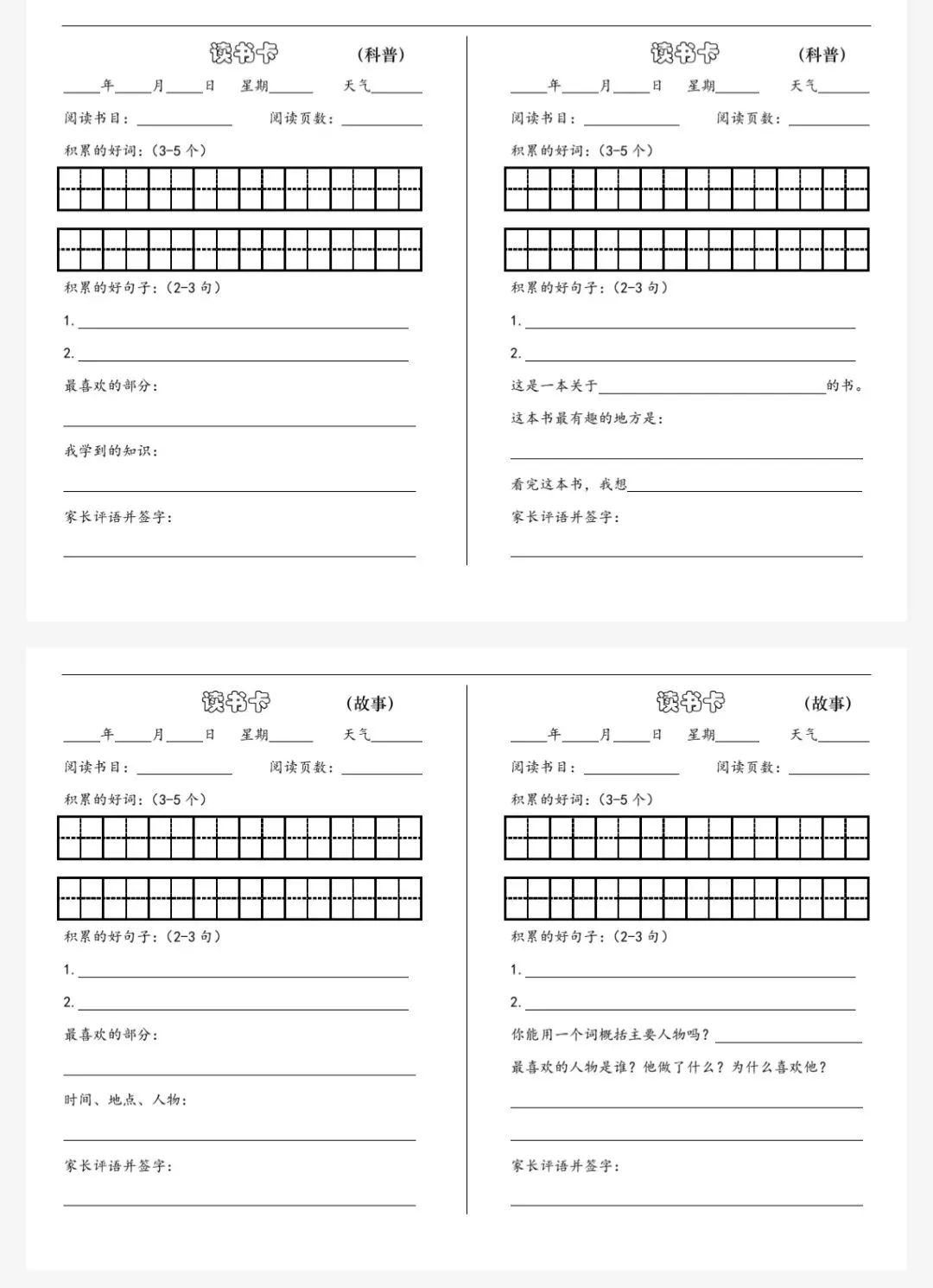 阅读记录清单模板分享(电子版可编辑)