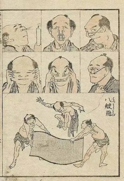 我最初注意漫画,是二十年前在日本的时候。日本是漫画流行的国家。日本最初用“漫画”二字的,叫作葛饰北斋。其人生于德川时代,约合我们中国的清初,距今已有三百余年。所以“北斋漫画”为日本漫画的开山老祖。