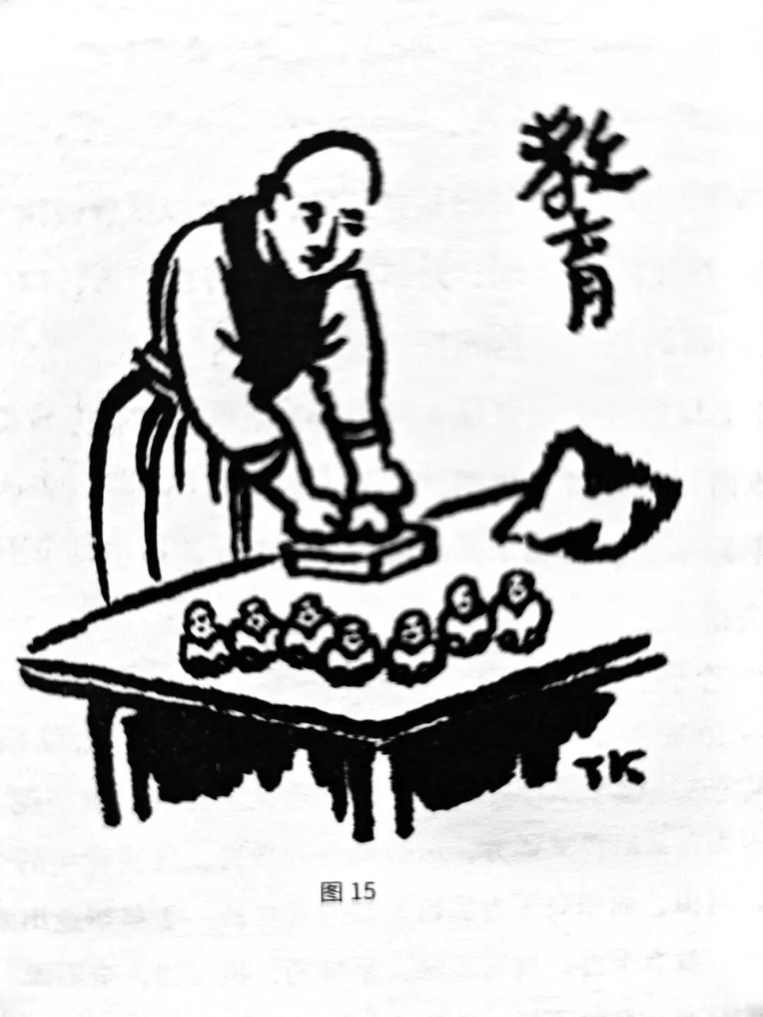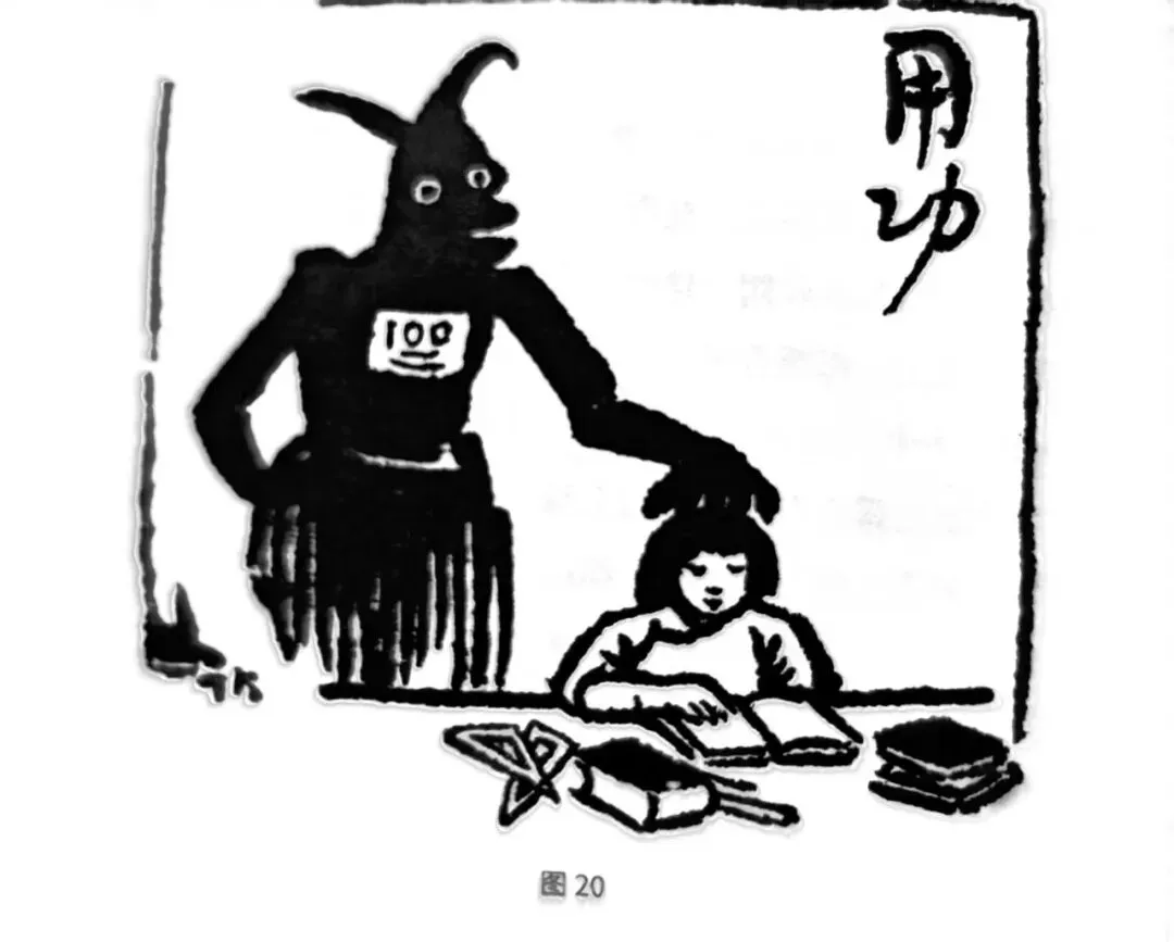 形可描,或不便于明言直说,乃另描一种性状相同的他事象,拿来象征所欲说的事象。这样隐藏的画法,叫作象征法。前文说过:比喻法与象征法大同而小异。所同者,二者都是不写本物而另写他物的。所异者,比喻法不写本物,而标本题;象征法则不写本物,亦不标本题。比喻法是用题目点明的。象征法则全不说破,任读者自己会悟。《文心雕龙》云“比显而兴隐”。比喻法相当于文学上的比,象征法相当于文学上的兴。象征法的漫画,用意最隐藏,含蓄最丰富,诗趣最多、艺术的价值最高。