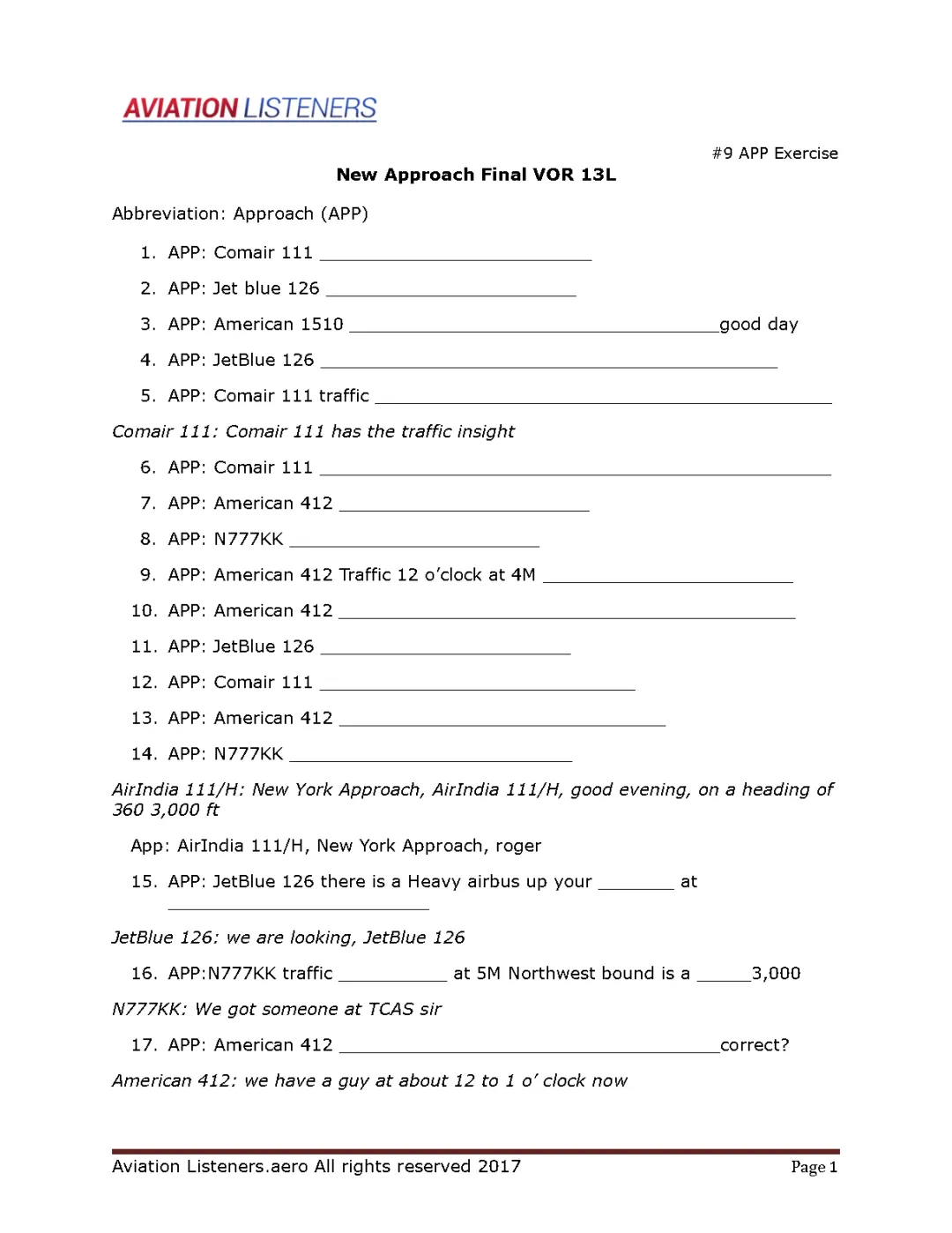 陆空通话实录练习:纽约进近 APP New York Final VOR 13L