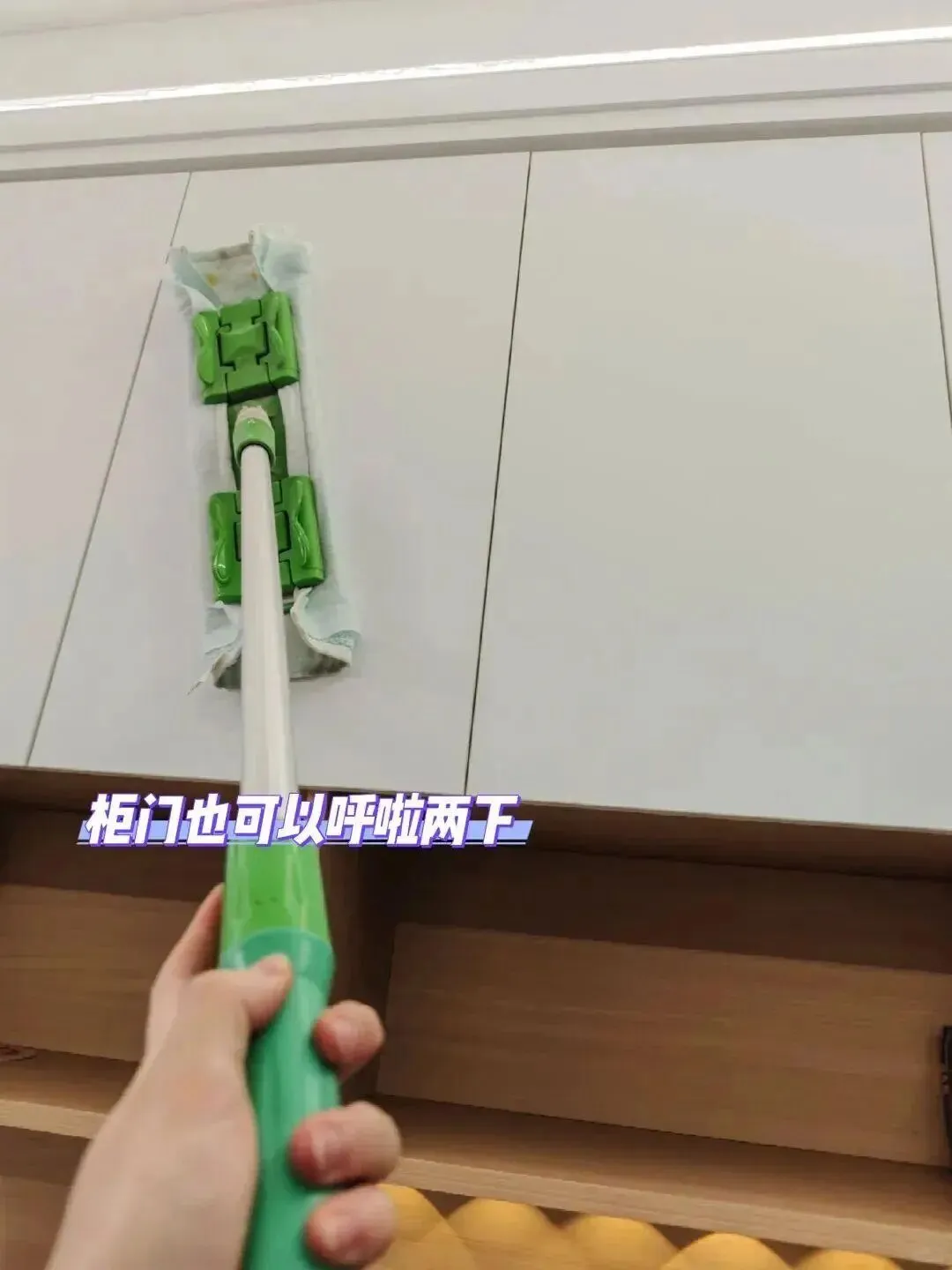 带上帽子和口罩,夹板拖把上先夹一块干抹布,再夹一张静电除尘纸,先从吊顶开始,再擦墙,一年就做这么一次,灰尘会被吸在纸上,不会扬得到处都是。