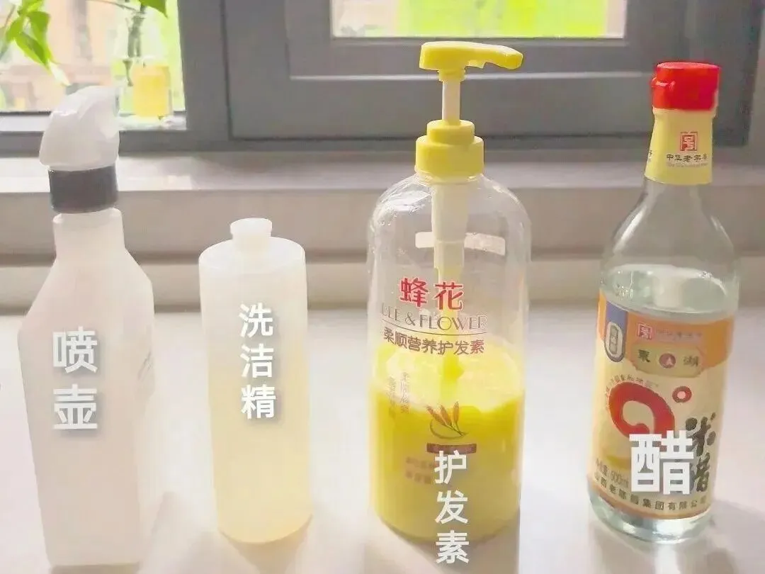 清洁剂:洗洁精+白醋+温水(1:1:10)
