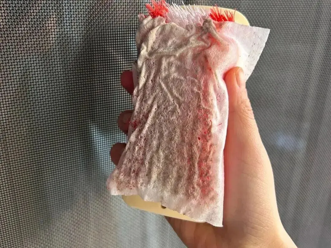 能够拆下来的纱窗,可以直接放卫生间用花洒冲洗,拆不下来的纱窗,也不用着急,可以先用超纤抹布干擦一遍,把浮灰、蜘蛛网都擦掉。