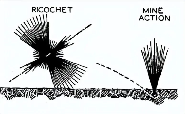 如果 HE-Frag 弹的弹道足够平直且地形允许,在引信设置为最大延时模式时,有一定的机会成功实现跳弹空爆(Ricochet air burst)。或者,也可以利用炮弹的平直弹道,刻意瞄准火炮前方的某一点,希望利用延时引信 HE 弹的“地雷效应”来击毁目标;如果炮弹不经意间越过了预定落点,它要么会落在离火炮极近的地方,要么会直接撞击炮盾,而这两种结果也都是极佳的。有趣的是,美国陆军技术手册 TM 9-1907 中提到,引信设置为延时模式(HE)的高爆破片弹对付反坦克炮特别有效,因为炮弹可以穿透薄弱的炮盾,随后在火炮后方一段距离爆炸,瞬间杀死所有炮组成员。