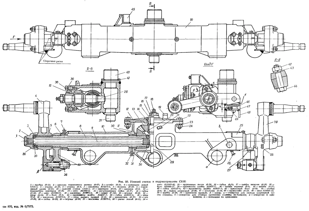 同样值得注意的是,D-44 的车轮没有驻车制动器(手刹),这对于此类火炮来说相当典型,因为制动器并非必需;但在美国的炮兵惯例中,这可能显得有些不寻常。根据 TM 9-3305《火炮武器原理》,所有牵引火炮都配备有由炮组手动操作的驻车制动器,而像 8 英寸 M1 和 240 毫米 M1 这样的大型武器还配有服务制动器(通常是连接到牵引车的后勤气刹)。对于 D-44 或任何其他带有开脚式炮架的火炮来说,只要将大架张开,火炮就会牢牢地固定在地面上,这使得手动驻车制动器完全成了多余。省去制动器可能还有助于减轻一部分重量。