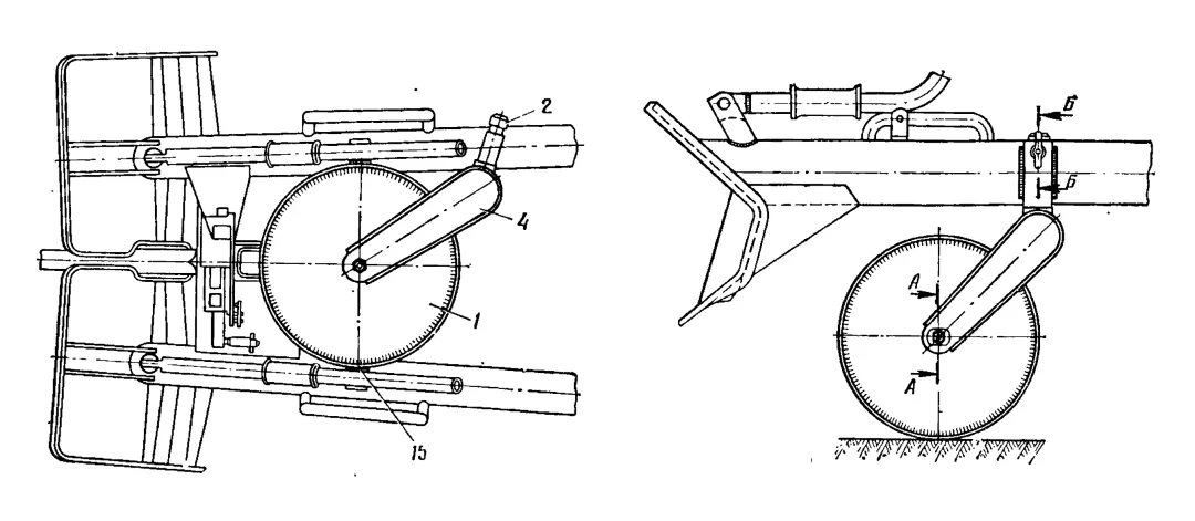 D-44 配备了用于直瞄射击的简易光学瞄准镜,以及兼顾间接和直瞄射击的全景瞄准镜。下图左侧的绘图显示了这两个瞄准装置相对于炮管轴线的偏移量。