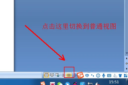 3、找到文档右下角的视图模式,选择普通视图。