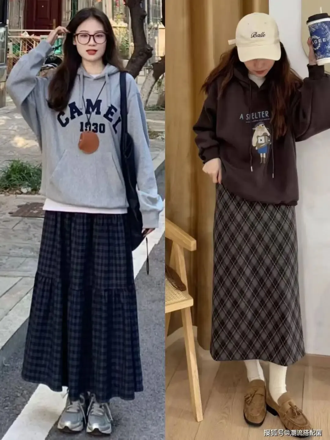 卫衣+格纹裙